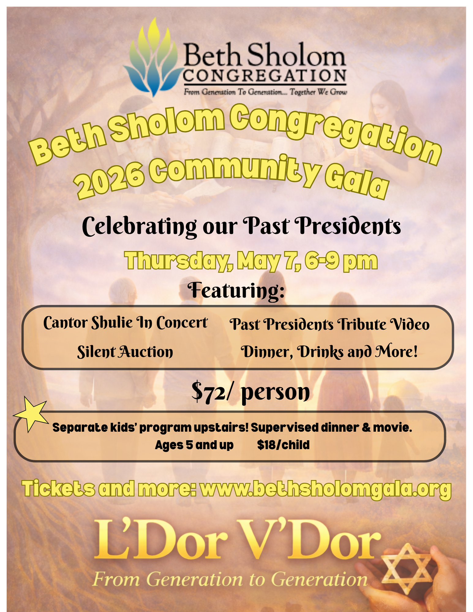 Sponsorship helps make the gala possible and strengthens Beth Sholom’s programs and community life from generation to generation. The silent auction is also a major part of the night, and every bid helps support the congregation.